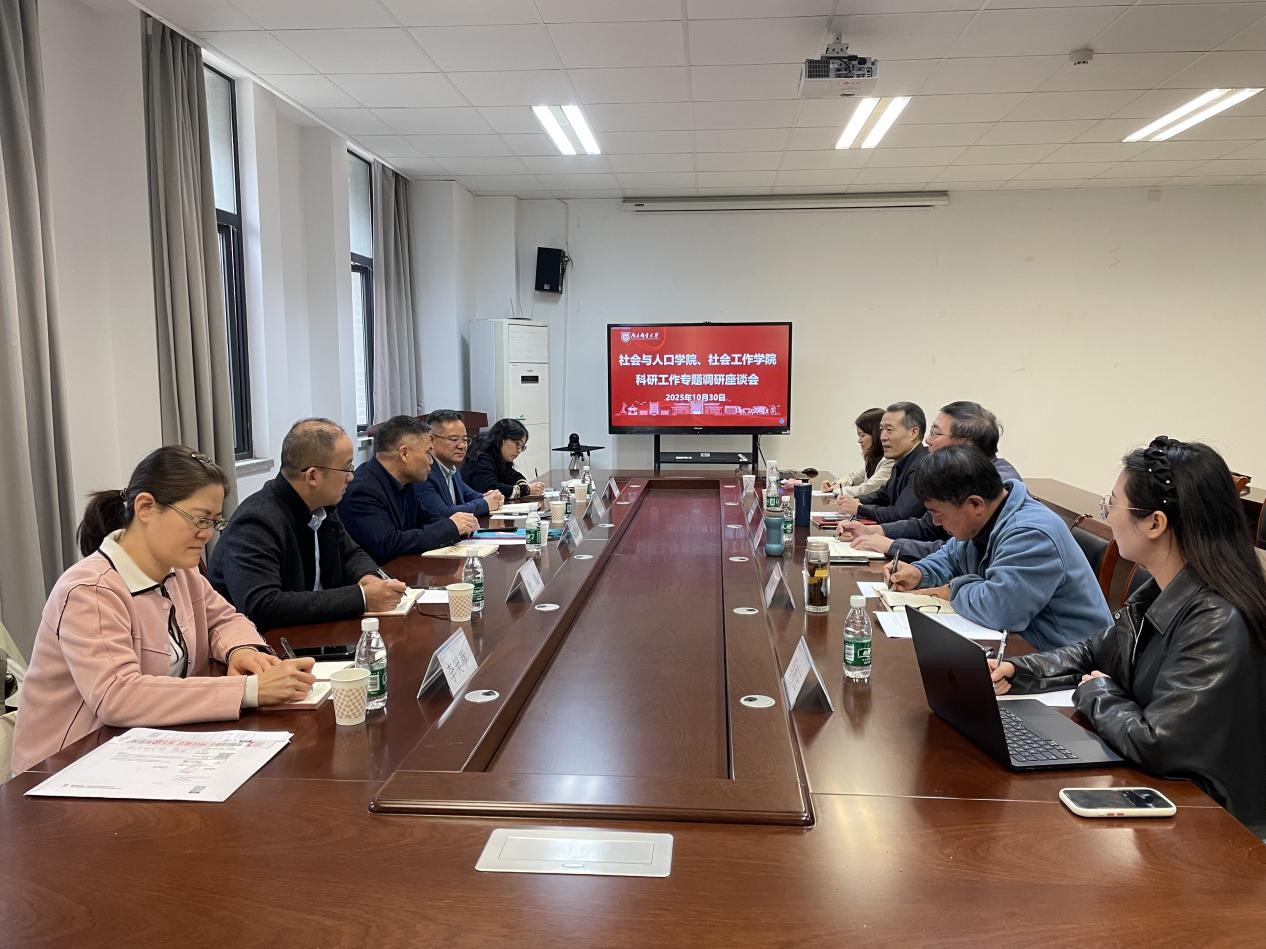 蒋国平书记首先指出本次调研旨在深入了解社会与人口学院、社会工作学院的科研发展现状与成果,探讨学科建设与实际社会需求之间的结合点,促进学院进一步提升学术研究质量及社会服务能力。